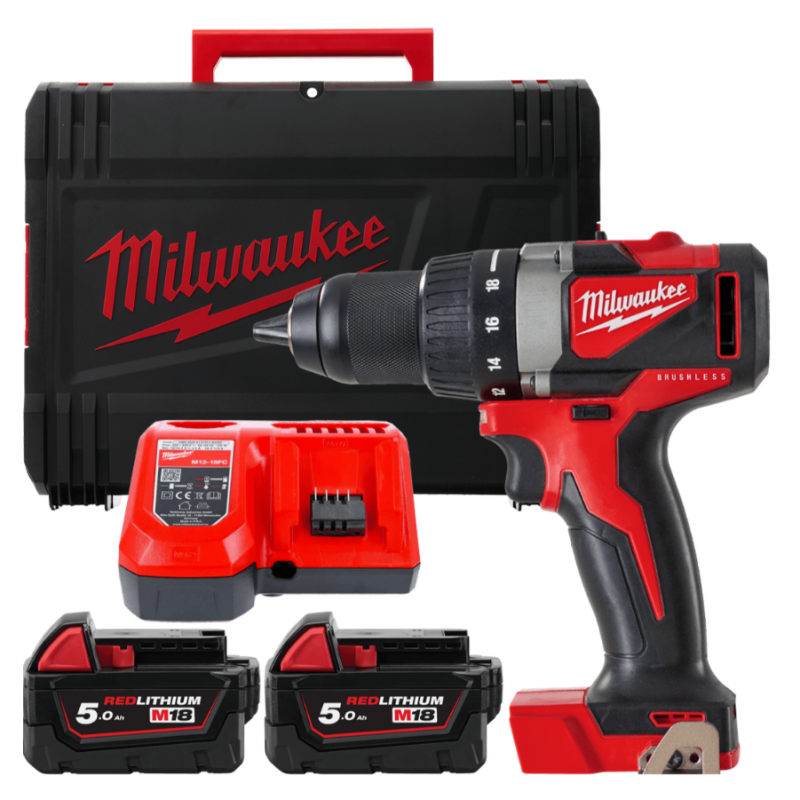 Дриль-шурупокрут акумуляторний MILWAUKEE, M18 BLDD2-502X, 82Нм (+ заряд.прис., 2акум. Х5Аг, HD кейс)