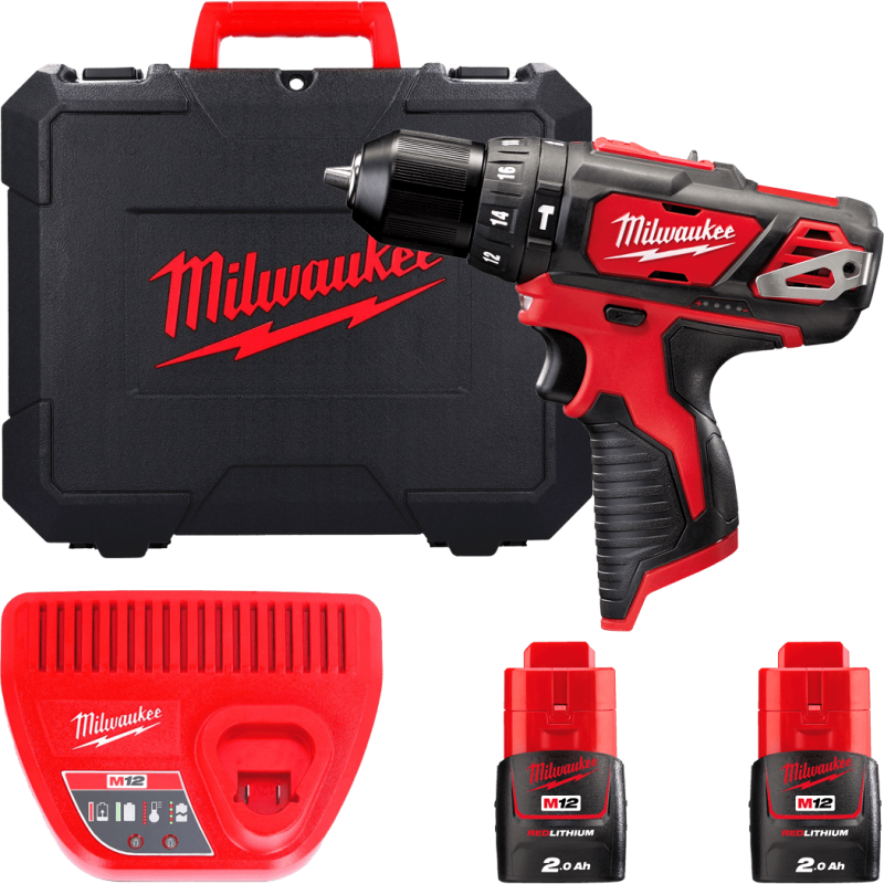 Дриль-шурупокрут з ударом акумуляторний MILWAUKEE, M12 BPD-202C (+ заряд.пристрій, 2 акум., кейс)
