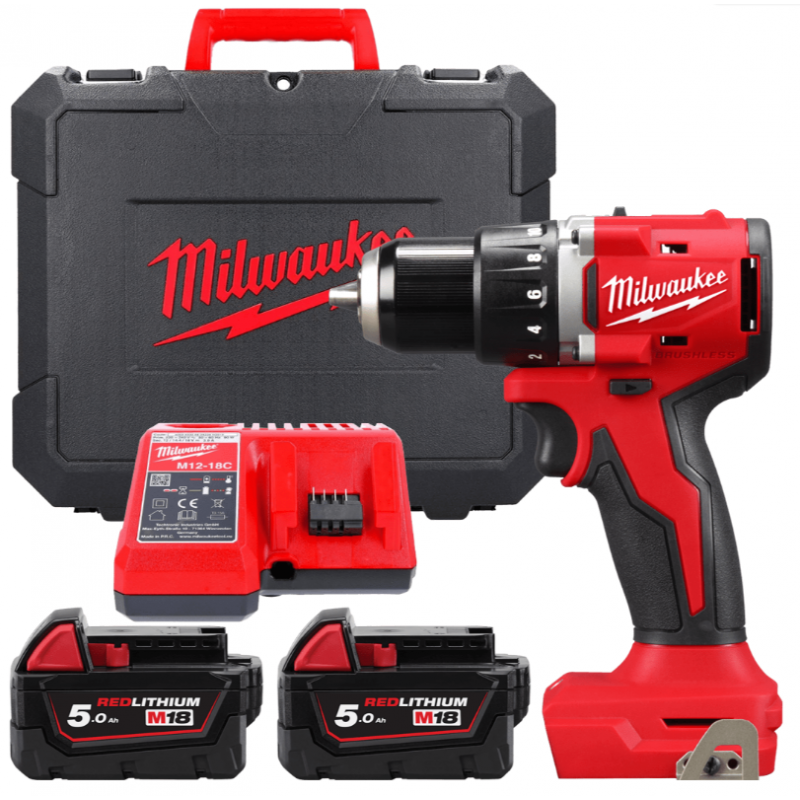 Дриль-шуруповерт акумуляторна безщіткова M18 BLDDRC-502С крутий. мом. 60.5 Нм MILWAUKEE (+ заряд.пристрій, 2 акум., HD кейс)