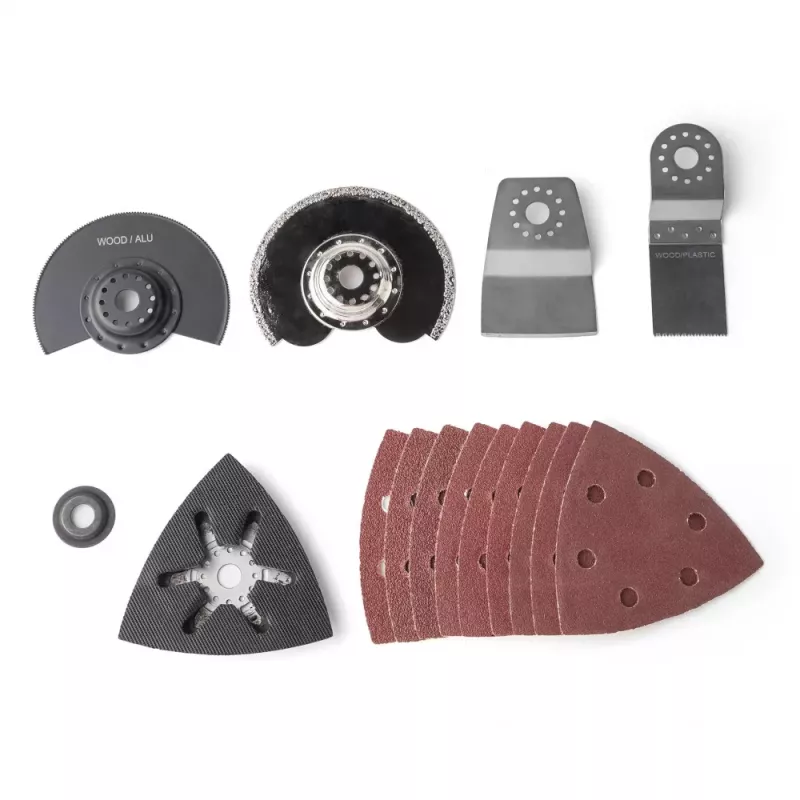 - Універсальність застосування: Ідеально підходить для різання, шліфування, зскоблювання та інших робіт з деревом, пластиком, металом та плиткою