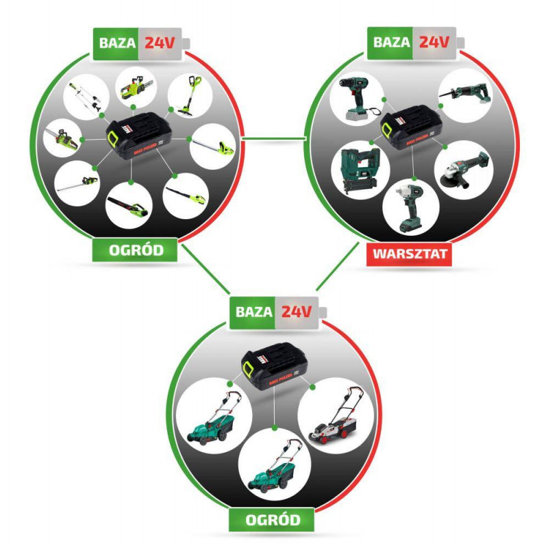 Акумуляторний ударний гайковерт Bass Polska BP-5327 - це найновіша лінійка акумуляторних інструментів Bass Polska, яка дозволяє використовувати один надійний акумулятор для живлення різних інструментів. Акумулятор та зарядний пристрій купуються окремо, що є оптимальним рішенням для тих, хто хоче розширити свій набір інструментів або доповнити обладнання своєї майстерні. Це дозволяє уникнути зайвих витрат і зручно використовувати один акумулятор для кількох пристроїв, забезпечуючи універсальність та економію.