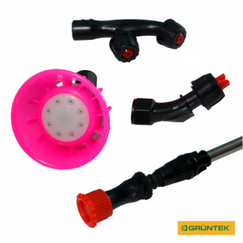 - Наявність в комплекті 3 пластикових форсунок, які забезпечують 3 різних типи струменів для обприскування.