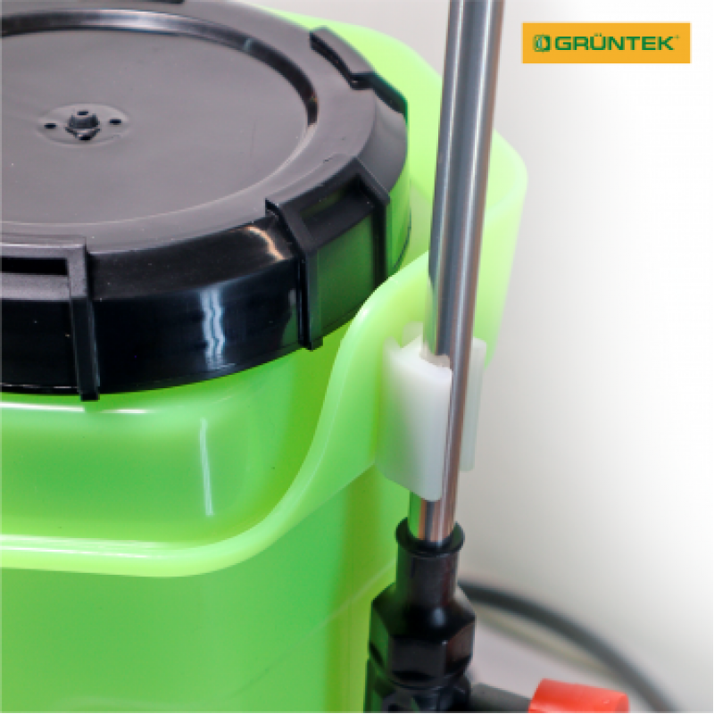 Обприскувач акумуляторний GRUNTEK BS-12-3BP - апарат, призначений для розпилення добрив, пестицидів, інших рідин. Оснащений пластиковим баком об'ємом 12 л, який розрахований на робочий тиск 1,5-4 бар. Найважливішою перевагою моделі є наявність ємного свинцевого акумулятора 8А/год / 12В, заряду якого вистачає на розпорошення 16-22 повних баків з розчином.