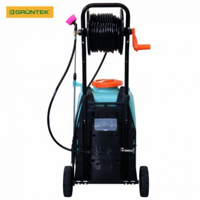 - 2 великі колеса та довга металева ручка спрощують процес переміщення обприскувача.