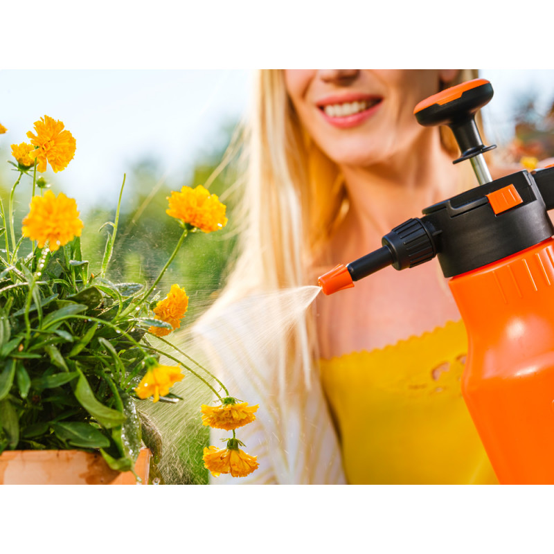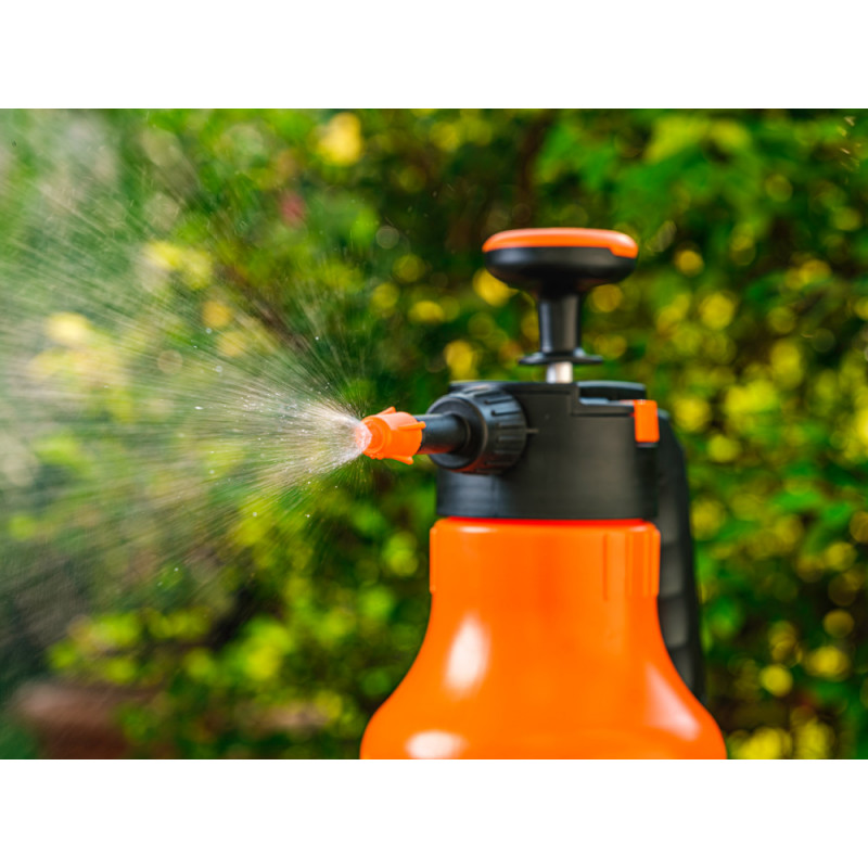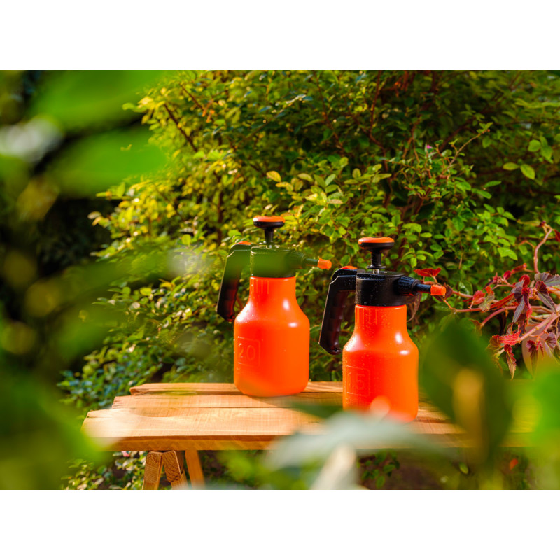 Обприскувач під тиском 2 л. Сумісний з водою та іншими розчинами, такими як миючі засоби, добрива, фунгіциди, протипаразитарні засоби та засоби для знищення бур'янів. Зручна прозора смужка для перевірки рівня рідини всередині. Алюмінієвий вал і поршень з регульованою кільцевою гайкою для позначення розчину, що міститься в баку. Задня кнопка для безперервного розпилення з механізмом блокування. Запобіжний клапан для тиску вище 3 бар і кнопка вентиляції, щоб скинути тиск і полегшити відкриття контейнера. Регульована насадка. Використовуйте всі 360° завдяки зручному фільтру з вагою. Хімічно стійкі ущільнення Viton® для максимальної довговічності.