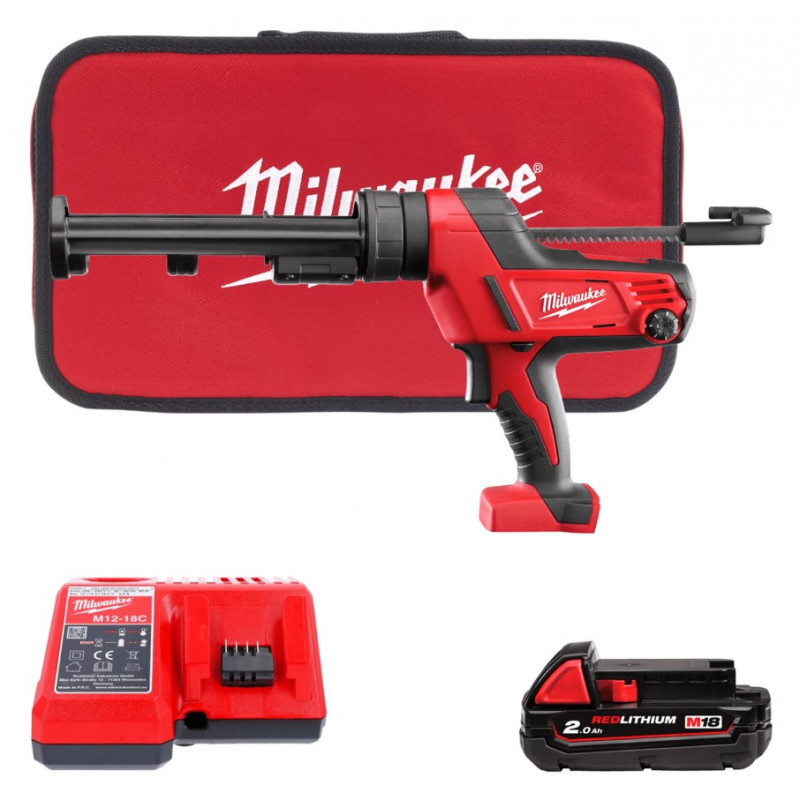 Пістолет для герметиків акумуляторний MILWAUKEE, C18 PCG/310C-201В, 310мл (+тримач картріджа, в сумці для інструментів)
