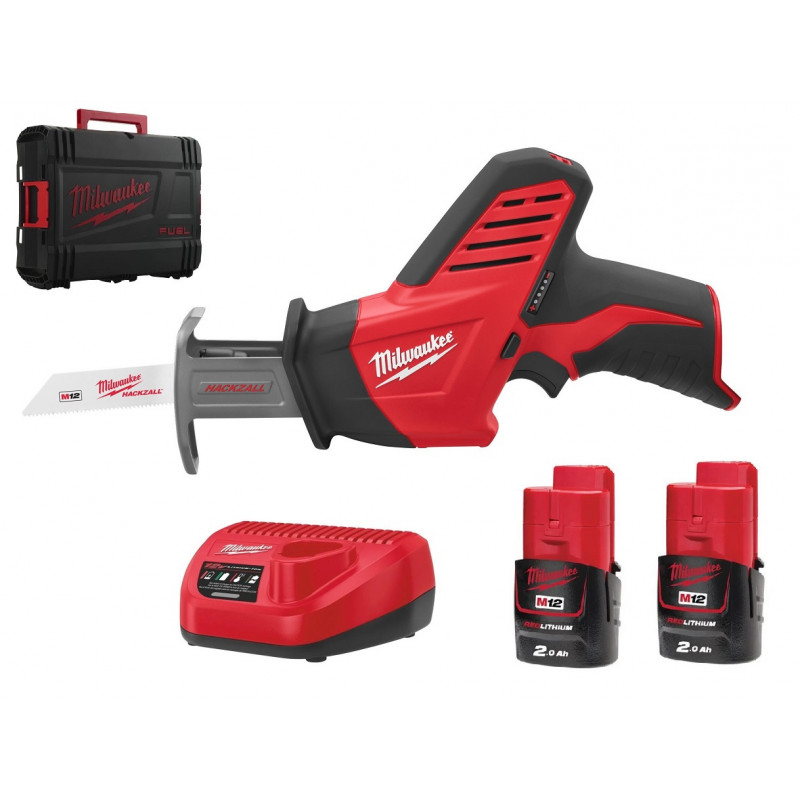 Пила шабельна акумуляторна MILWAUKEE, C12 HZ-202C (зарядний пристрій С12 С, 2 акумулятори М12 В2 2Аг, полотно, кейс)