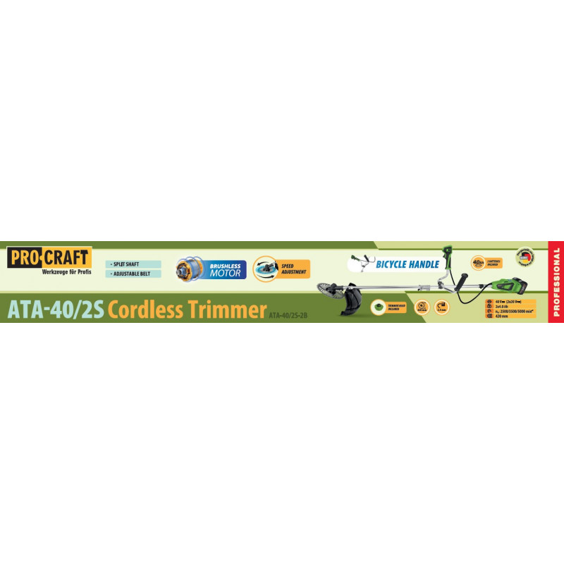 Акумуляторний триммер Procraft ATA40/2S (2 АКБ та ЗП) велосипедна ручка