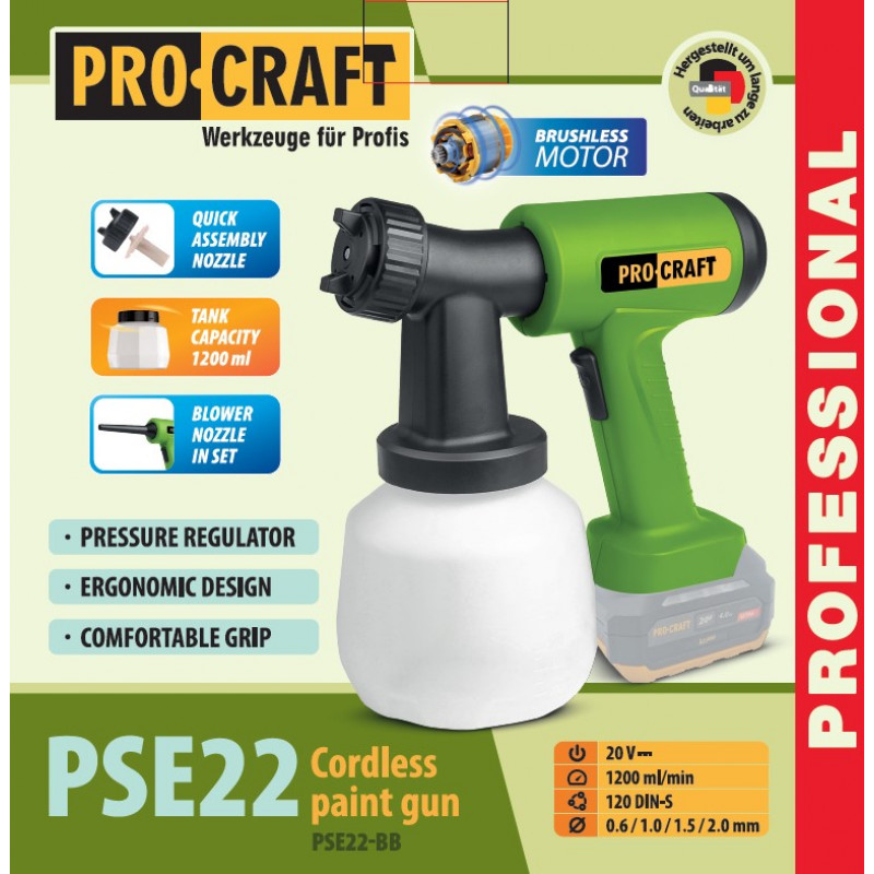 Акумуляторний фарбопульт та повітродувка Procraft PSE22 (без акб та зп)