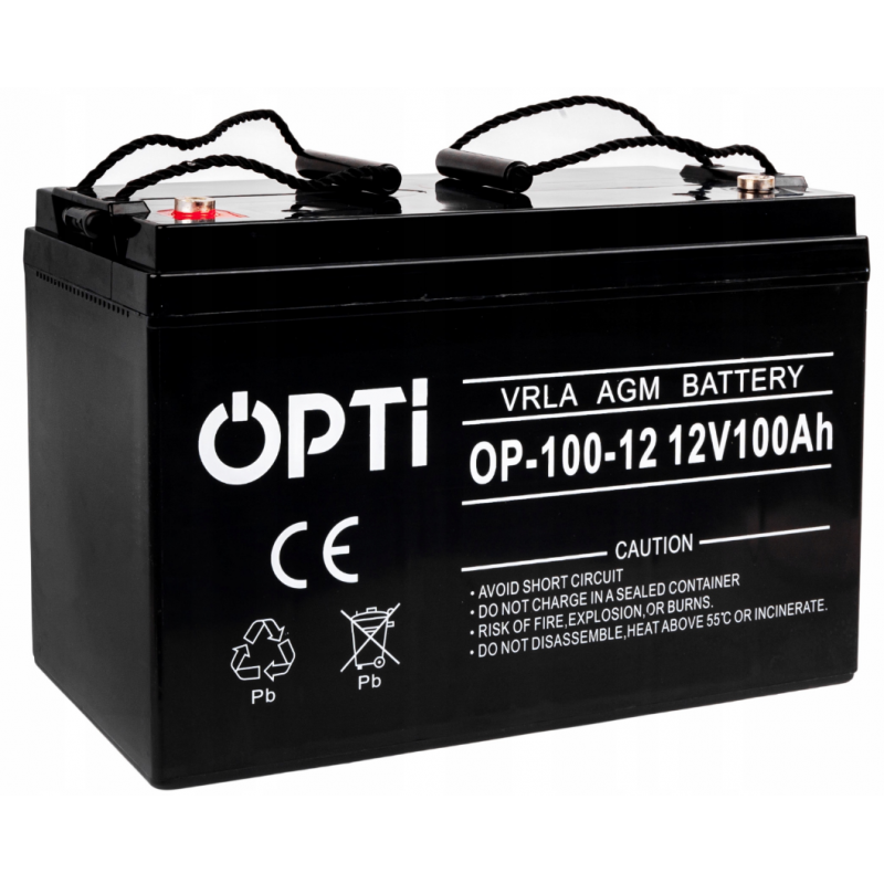 Акумулятор серії OPTI призначений, зокрема, для живлення систем аварійного електропостачання (ДБЖ, системи автоматизації), фотогальванічних установок чи перетворювачів напруги. Найкраще працює у буферних системах підзарядки. Його можна використовувати у програмах, де батарея працює циклічно. Для глибини розряду до 50% має близько 600 робочих циклів. Розрахунковий термін служби (25°C): 5-8 років. Найбільш важливі особливості: Внутрішня конструкція на основі сепараторів із скловолокна, в яких сконцентровано електроліт Автоматична система герметизації. Коли тиск в акумуляторі занадто високий, клапани відкриваються, внаслідок чого газ, що утворюється, безпечно викидається за межі корпусу і запобігає пошкодженню. Така ситуація виникає при перезарядженні акумулятора
