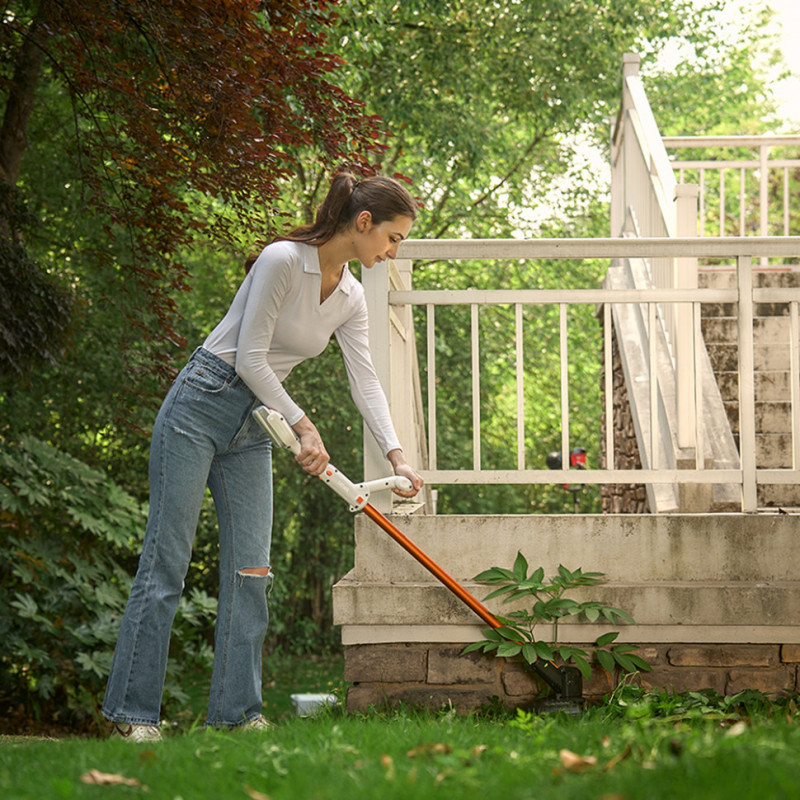 Тример справляється з покосом як дрібної трави, так і великих бур'янів. До того ж ви не прив'язані до мережі, оскільки пристрій працює від портативного акумулятора.