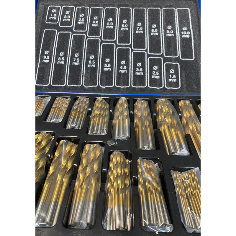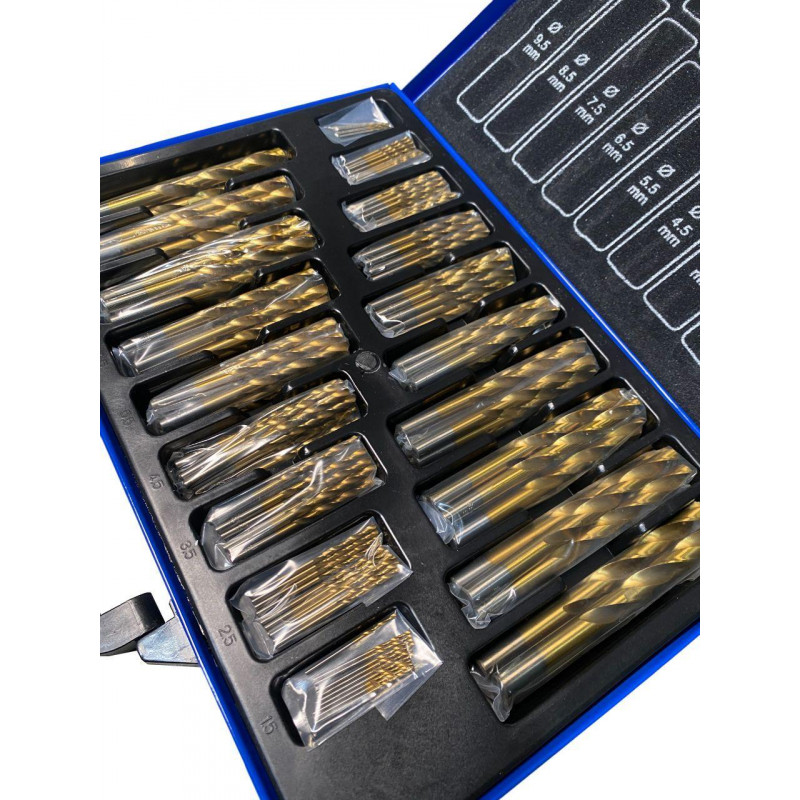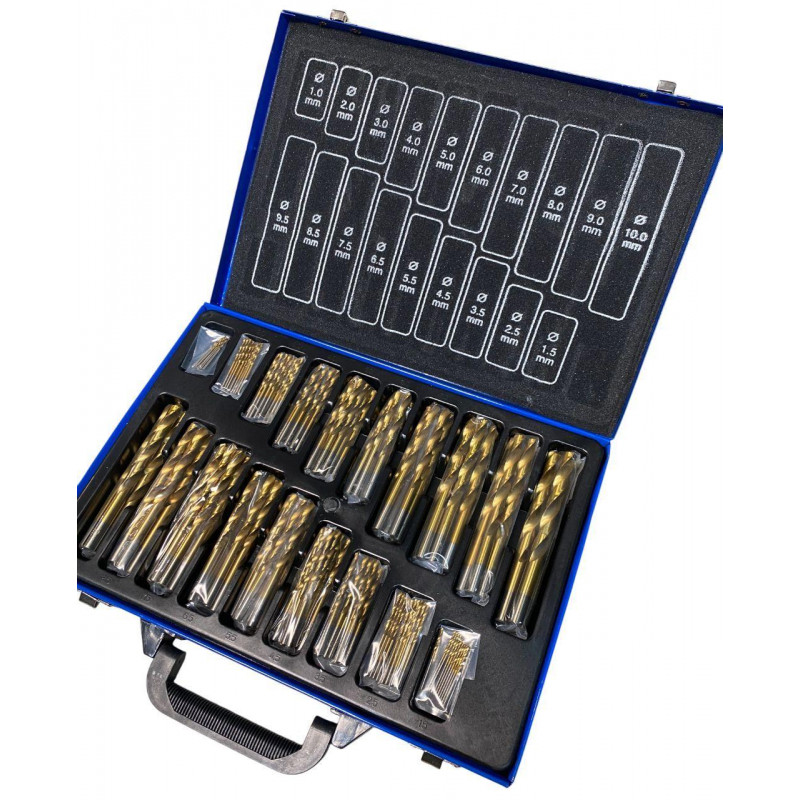Комплект спіральних свердел із швидкорізальної сталі, 170 шт., 1-10 мм, нітрид титану Holzmann SPS170TIN