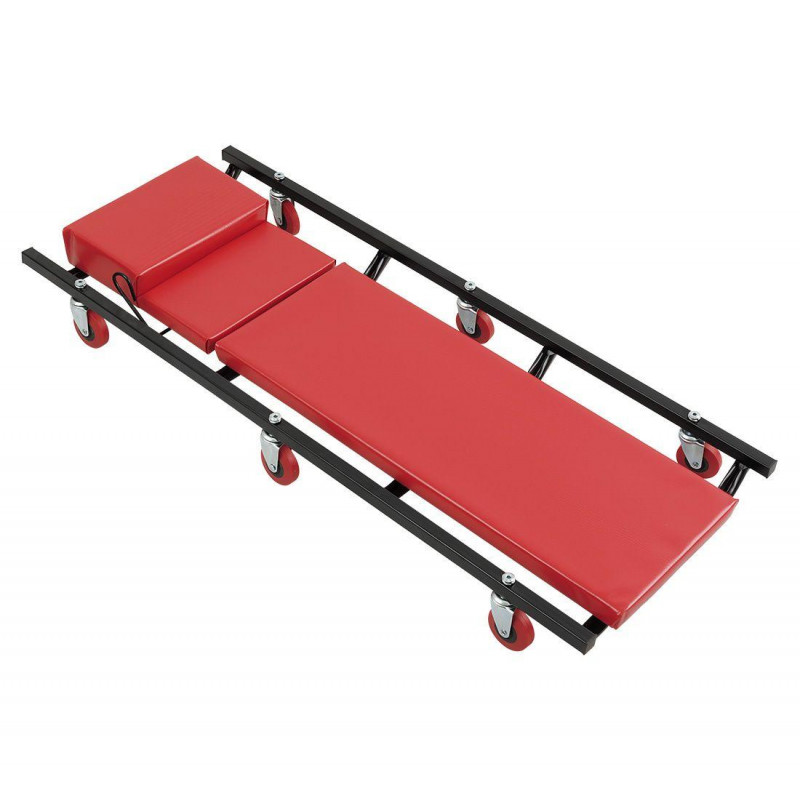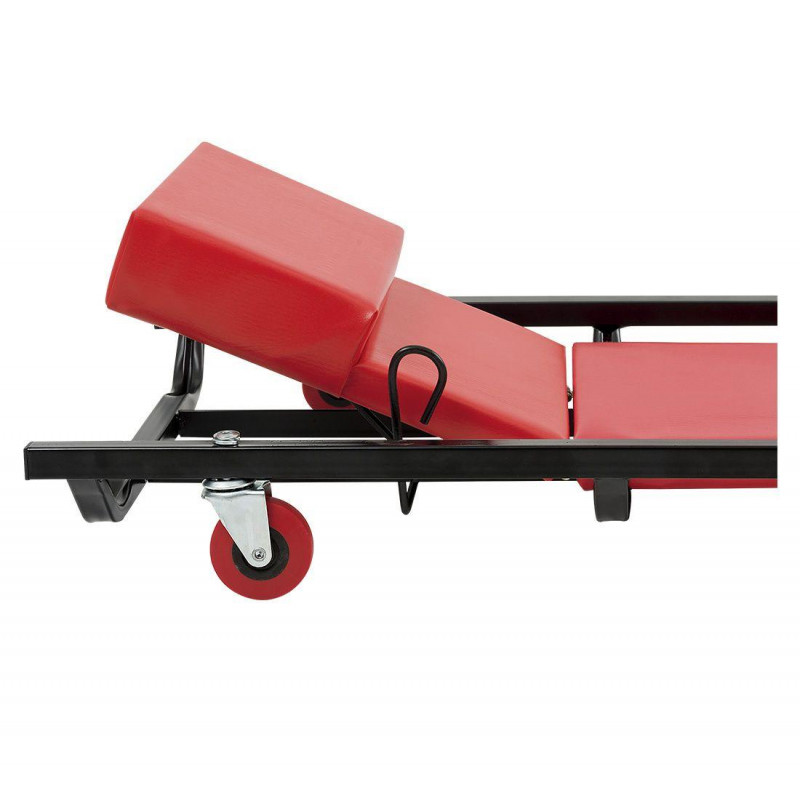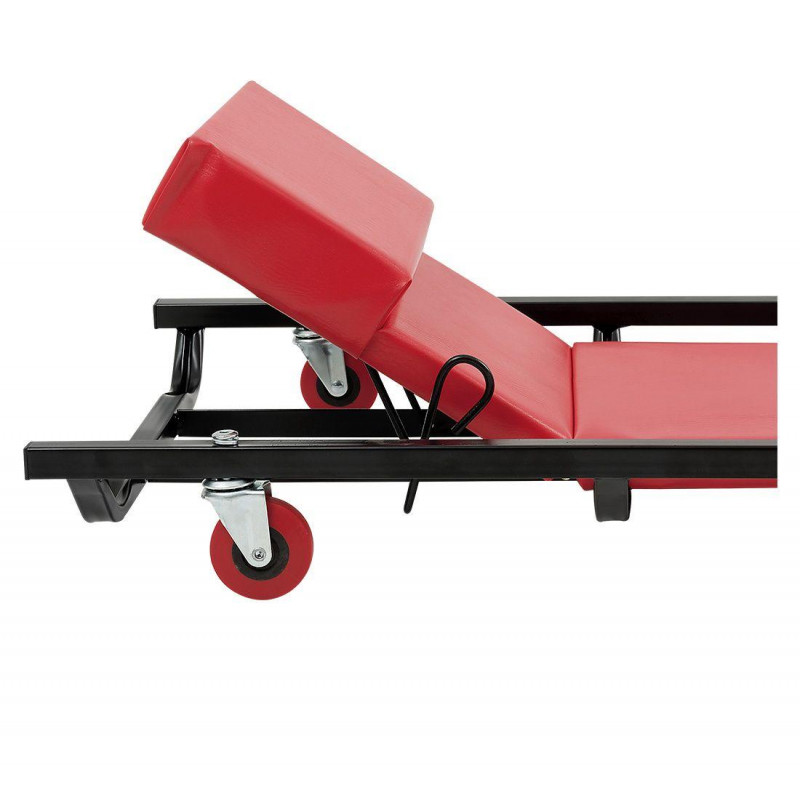 Лежак для автомеханіка REDATS з 4-ступеневим регулюванням підголівника та міцною конструкцією забезпечує зручну роботу під автомобілем, зносостійкість та тривалий термін служби. Каркас виготовлений з міцної сталі і має високу стійкість до деформацій. Оббивка виготовлена з приємної на дотик екошкіри, має привабливий вигляд і легко очищається. Розмір лежака 1017х428 мм забезпечує підтримку тіла в природному положенні, а висота 97 мм дозволяє працювати під низькими авто і дає зручний доступ до всіх вузлів автомобіля.
