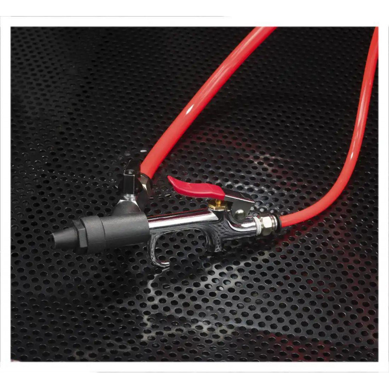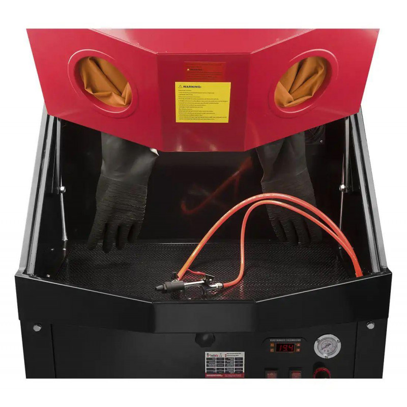 Рідина для миття постійно рециркулює всередині системи, що зменшує витрати на миючий розчин. Електричний нагрівач 2000 Вт, термостат для підтримки температури до 50°C та цифровий дисплей контролю температури забезпечують оптимальну для якісного очищення температуру рідини. Гнучкий металевий шланг дозволяє ефективно очистити важкодоступні місця деталі, а регулювання тиску у діапазоні 4,8-8,2 Бар - адаптувати силу струменя під її особливості. Ця професійна мийка деталей комплектується дворежимним пістолетом (подача повітря або подача повітря + миючий розчин), що дає змогу видалити стійкі забруднення або продути деталь після мийки.
