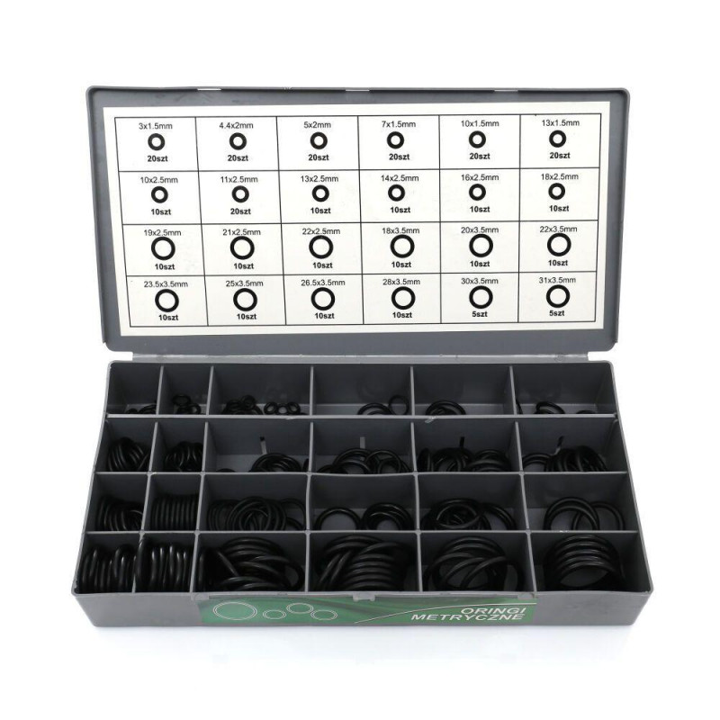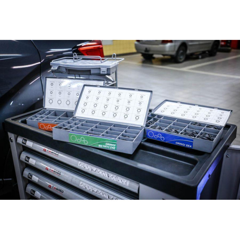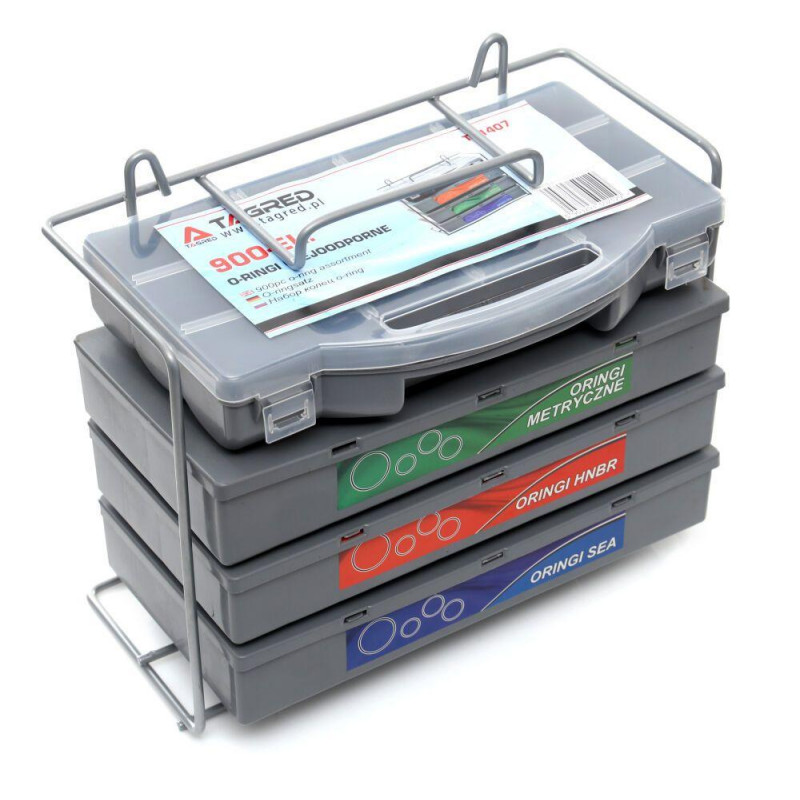 Набір метричних ущільнюючих кілець, HNBR, резинових прокладок, O-ring TAGRED TA1407 розсортований в дуже практичних ящиках. Шухляди мають маркування, що допоможе швидко знайти потрібну пломбу. Сортер з ручкою і можливістю кріплення на підставку.