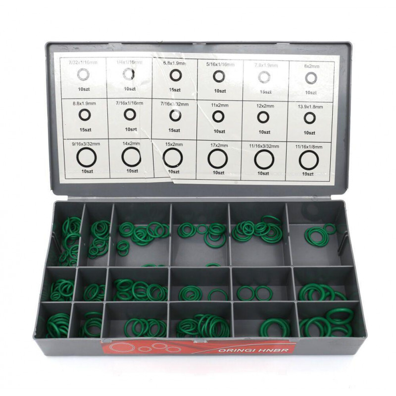 Набір ущільнювальних кілець HNBR має високу стійкість до: озону, дизельного палива, масел рослинного та тваринного походження, легких паливних масел, мінеральних масел, мастил, гідравлічних рідин, моторних, нагрівальних і трансформаторних масел, масляно-водяних емульсій типу HSA, HSB, Аліфатичні вуглеводи, такі як: бензин, пропан-бутан, Розбавлені кислоти, луги та солі, Спирти, Суміші гліколів з водою до 150°C, Кислі гази, Вода до 60°C