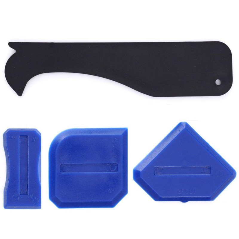 Набір шпателів з різаком для вирівнювання силікону TAGRED TA4137 - високоякісний набір з 3 шпателів + пластиковий шпатель, виготовлений з термопластичної гуми (TPR), до якої не прилипає силікон, для нанесення свіжої герметизуючої суміші (силікону, затірки). Дозволяють досягти чистої, рівномірно гладкої поверхні ущільнювача. Вони не пошкоджують краї і не дряпають засклені поверхні.