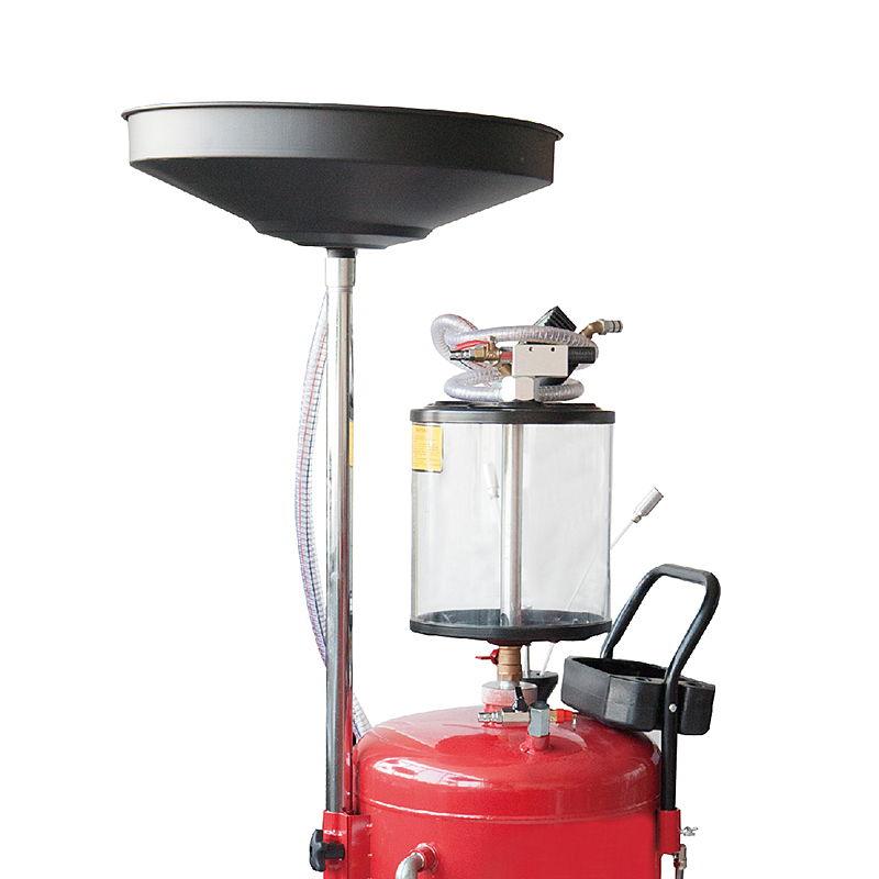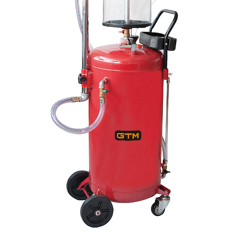 GTM TRG2090 - пересувна пневматична установка, спеціально розроблена для зручного й ефективного зливання та вакуумного відкачування оливи. Вона оснащена прозорою мірною колбою місткістю 12 літрів, що дає змогу наочно контролювати процес. Індикатор рівня і серія щупів забезпечують точне визначення кількості рідини, що витягується.