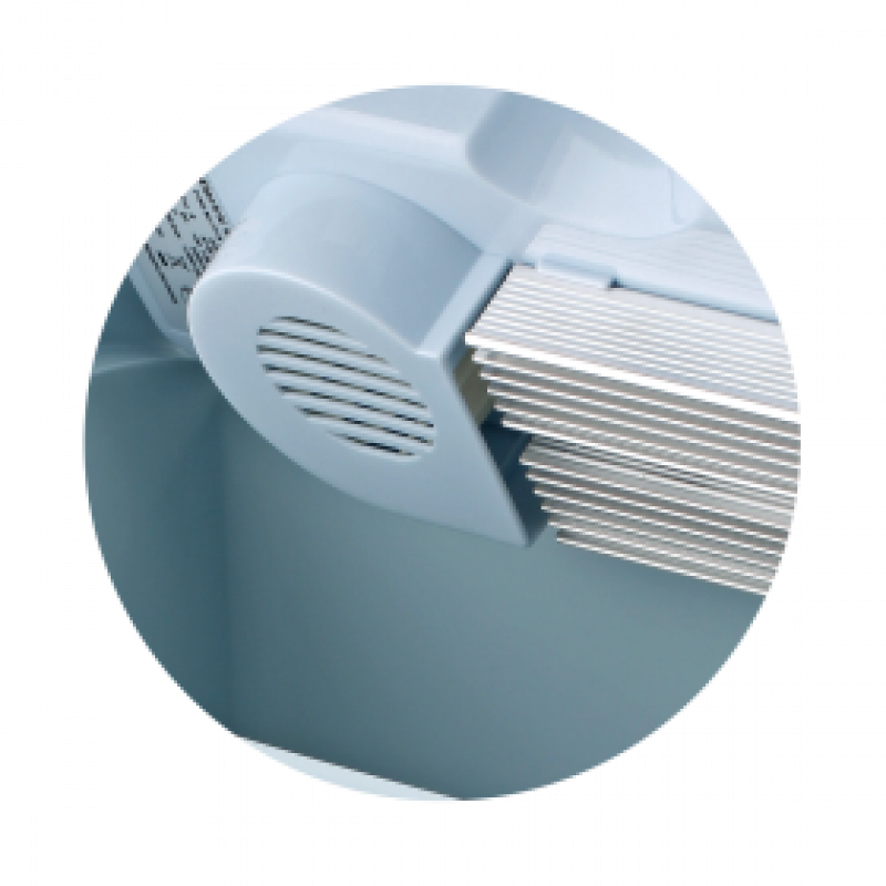Принцип роботи грунтується на властивості напівпровідникових пластин, що більш відоме як «ефект Пельтье». У випадку протікання, через пластину напівпровідникового типу, одна зі сторін відповідає за охолодження (повернена всередину холодильника), друга нагріває (дивиться назовні, охолоджується вентилятором).
