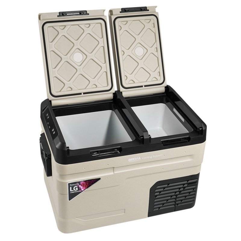 Автомобільний холодильник Brevia 38 л (компресор LG) двокамерний 23425 — місткий компресорний холодильник із двома незалежними камерами, який дозволяє одночасно охолоджувати та заморожувати продукти. Завдяки надійному компресору LG пристрій забезпечує швидке охолодження, стабільну роботу та ефективне підтримання заданої температури під час подорожей, кемпінгу або тривалих поїздок.