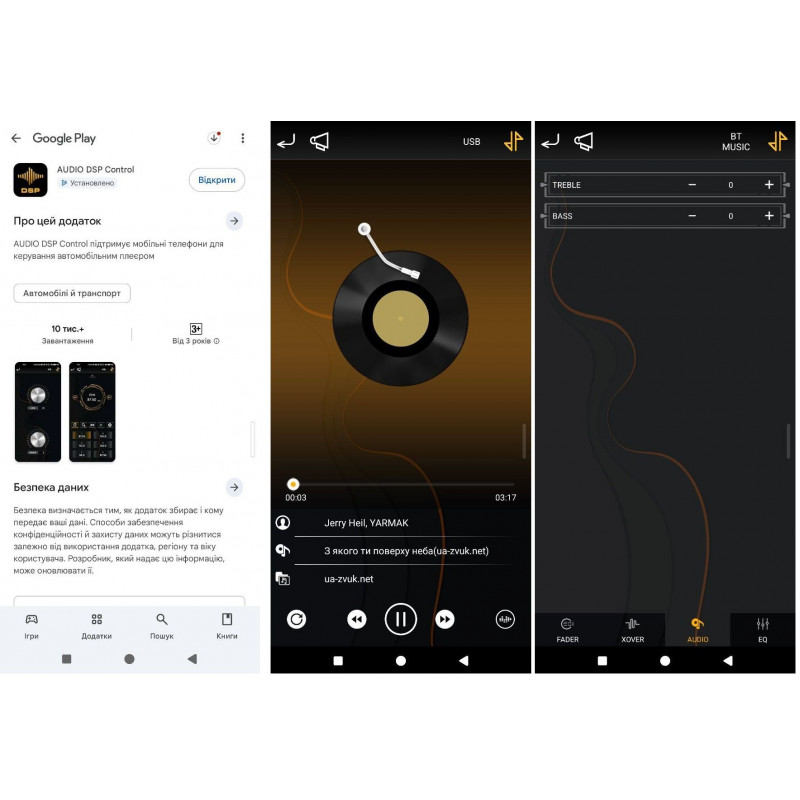 Після встановлення застосунку під’єднайте смартфон через Bluetooth до магнітоли. Дочекайтеся, коли на екрані з’явиться напис BT ON, і запустіть програму. Додаткові налаштування не потрібні — застосунок автоматично підключається до ресивера й готовий до використання.