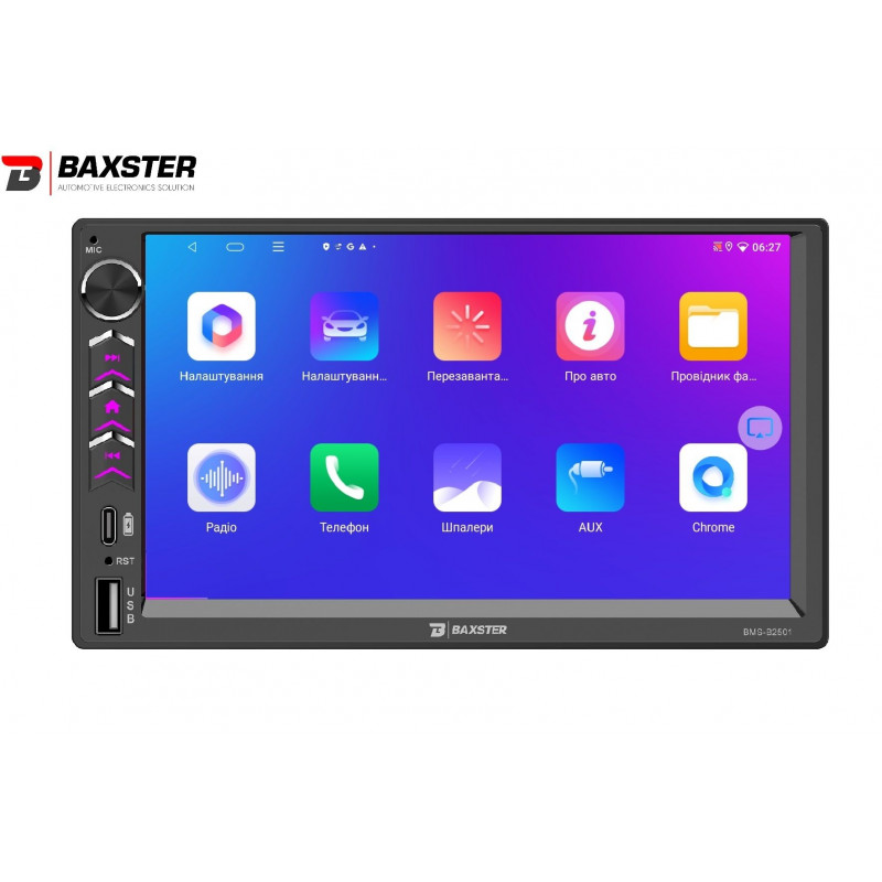 Baxster BMS-B2501 — це універсальний мультимедійний центр, який можна встановити практично в будь-який автомобіль замість штатного головного пристрою.