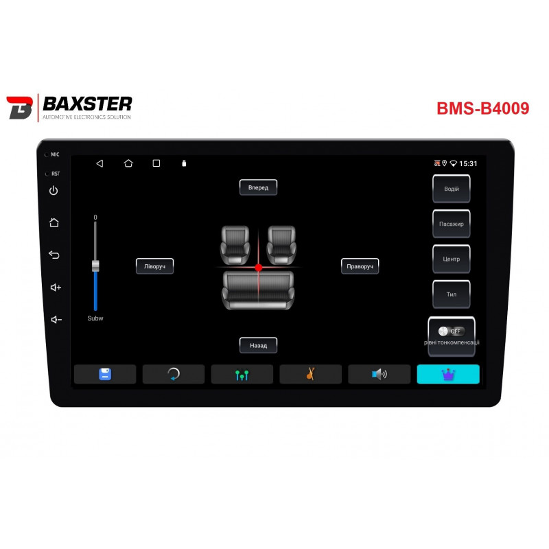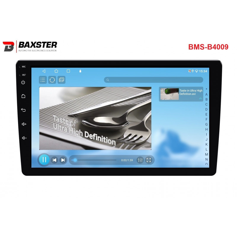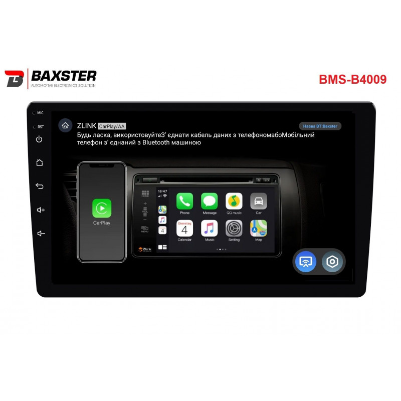 Baxster BMS-B4009 — це сучасний мультимедійний центр із яскравим 9-дюймовим QLED-екраном, OS Android 13, сучасним чотириядерним процесором ARM Coretex-A53 1.8 ГГц, 4/32 ГБ пам’яті, модулем Wi-Fi 5G/2.4G, Bluetooth 5.4, підтримкою CarPlay, Android Auto, цифрових і аналогових камер заднього огляду, а також чудовим звуком, за який відповідає підсилювач YD7388 із 32-смуговим DSP Professional еквалайзером.