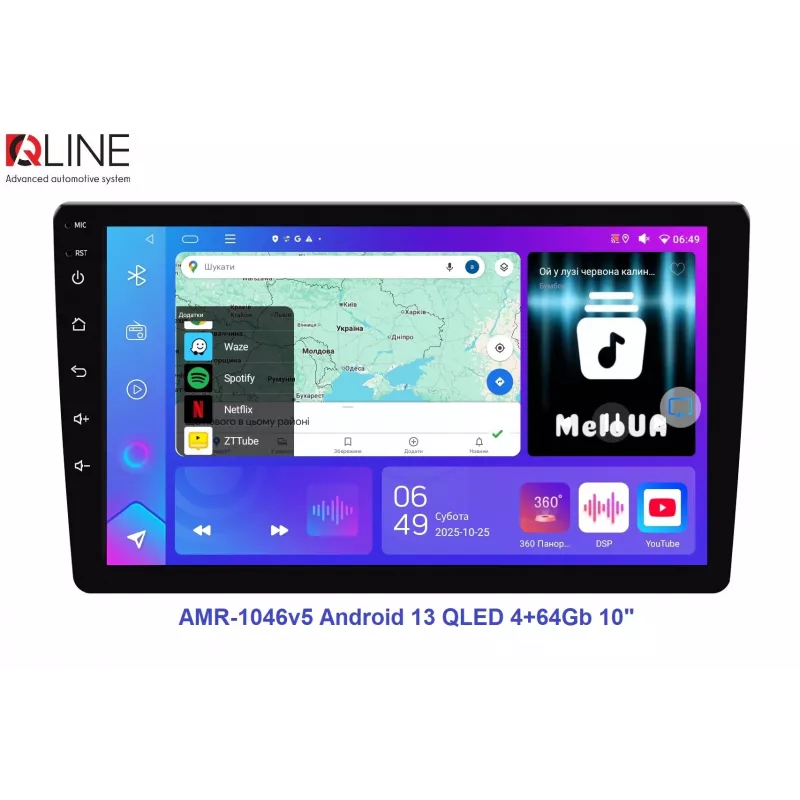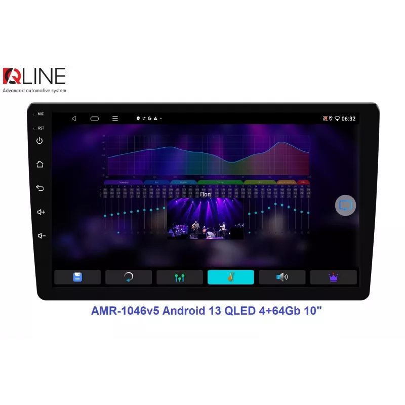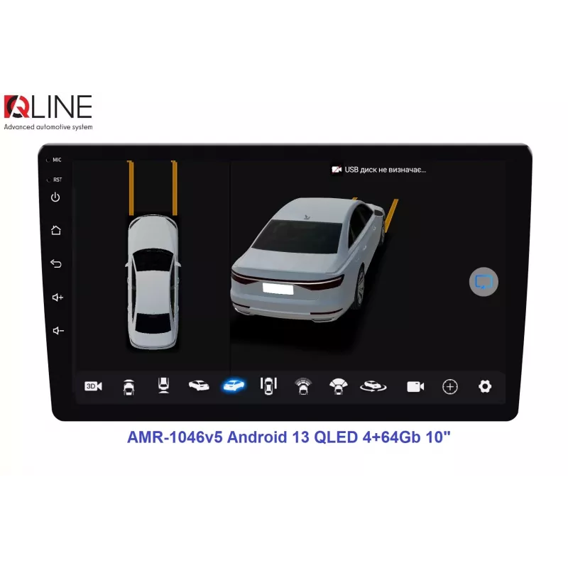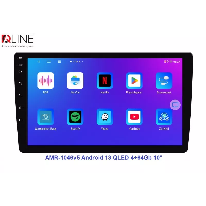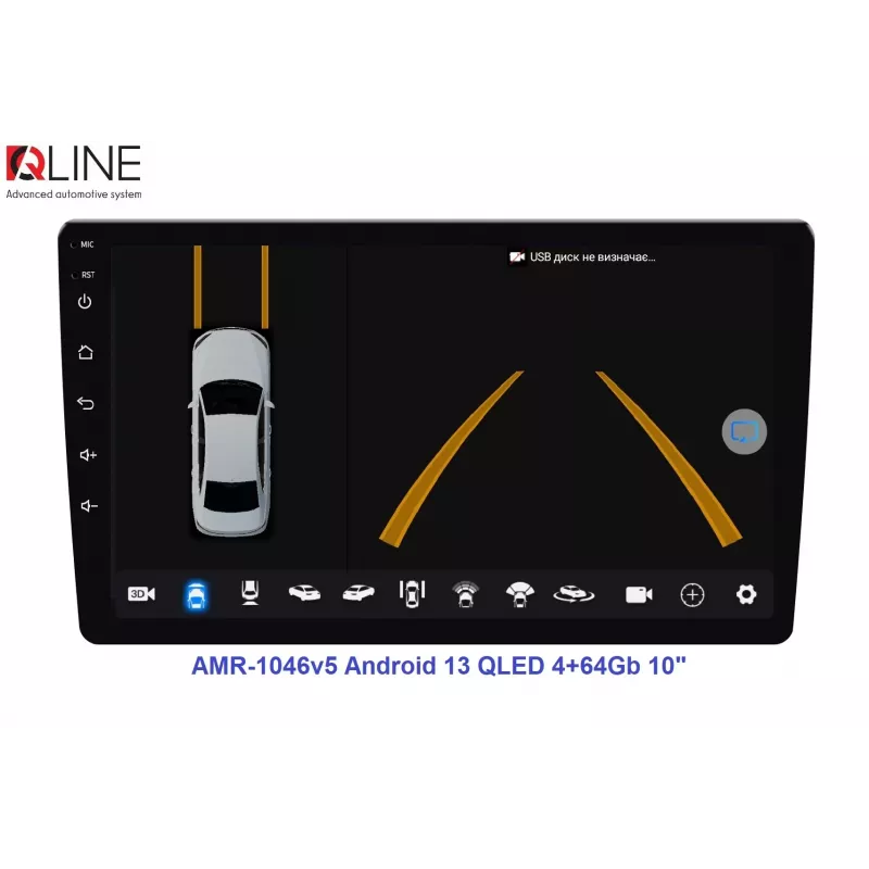 Як видно з назви, новинка має 4/64 Гб пам'яті, 10" екран та OS Android 13 як і попередня версія, але решта функціоналу дуже змінилась. Qline AMR-1046v5 отримала яскравий QLED екран 1280*720, популярний та надійний процесор Allwinner A133P 1.8GHz, потужний підсилювач TCB001, радіомодуль SI4755 з покращеним прийомом радіо та RDS, високофункціональний DSP процесор AKM7604, Bluetooth 5.4 і головне - підтримку кругового огляду.