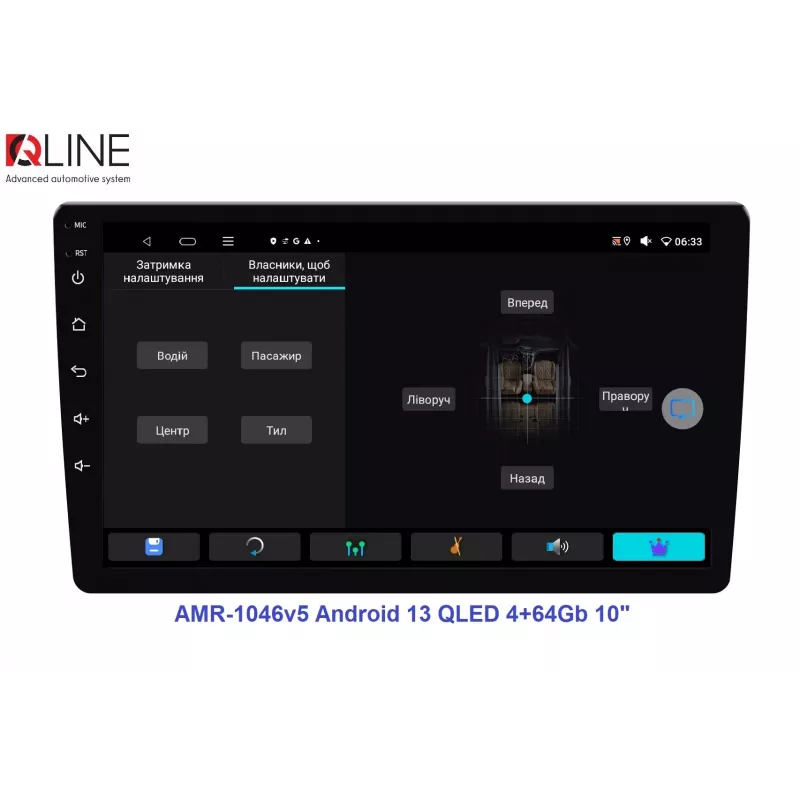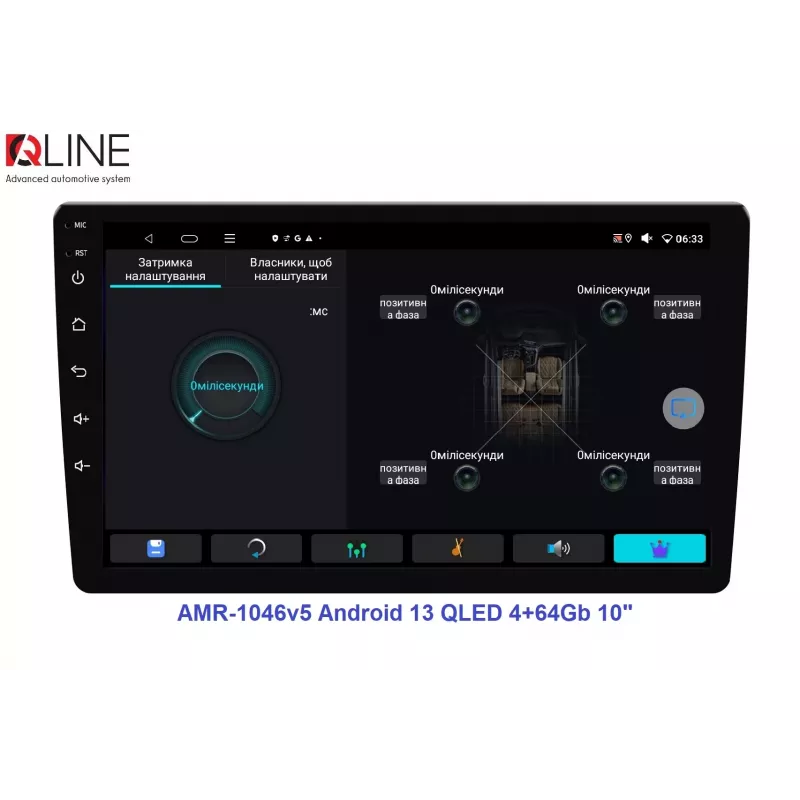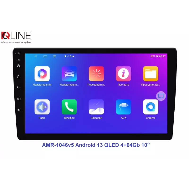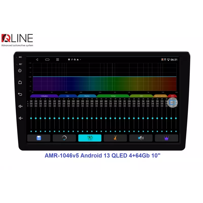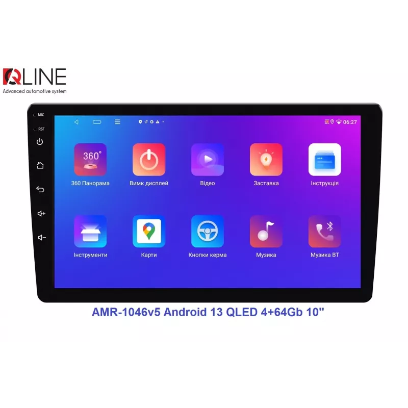 Як видно з назви, новинка має 4/64 Гб пам'яті, 10" екран та OS Android 13 як і попередня версія, але решта функціоналу дуже змінилась. Qline AMR-1046v5 отримала яскравий QLED екран 1280*720, популярний та надійний процесор Allwinner A133P 1.8GHz, потужний підсилювач TCB001, радіомодуль SI4755 з покращеним прийомом радіо та RDS, високофункціональний DSP процесор AKM7604, Bluetooth 5.4 і головне - підтримку кругового огляду.