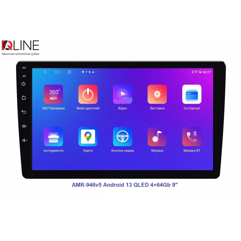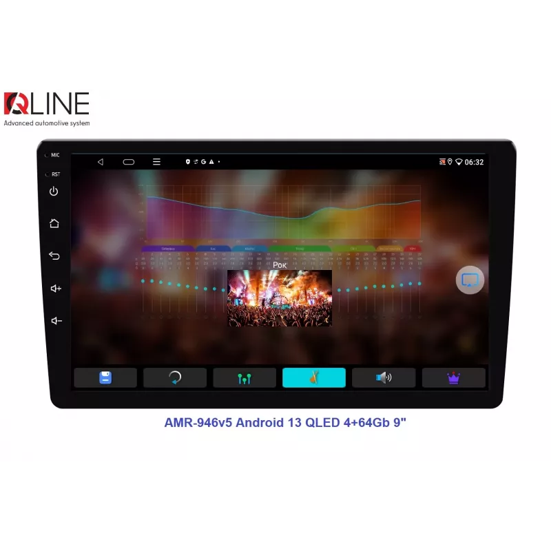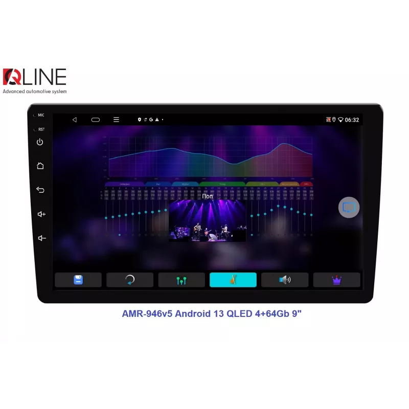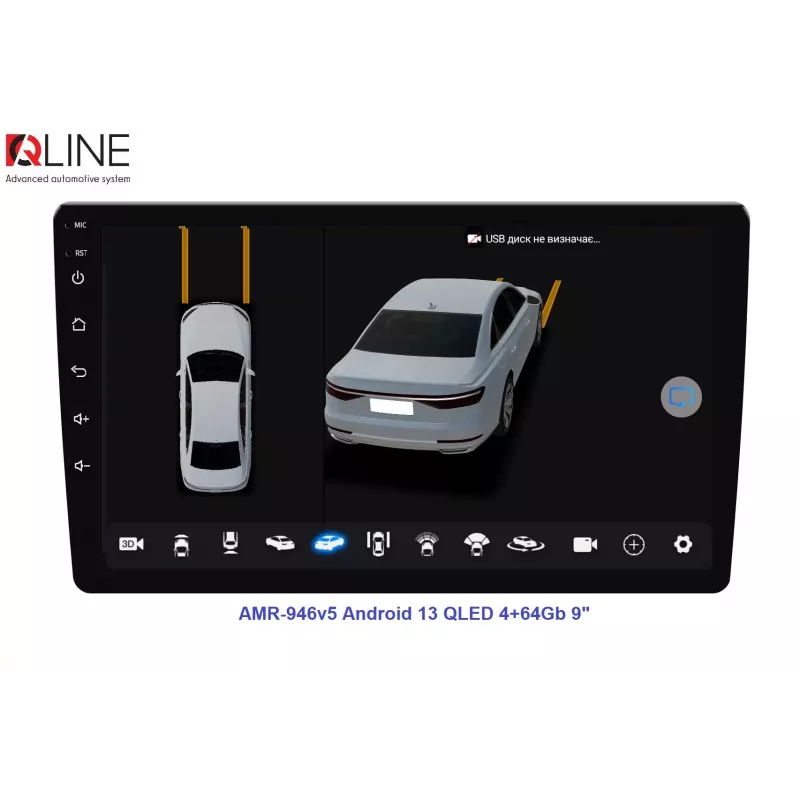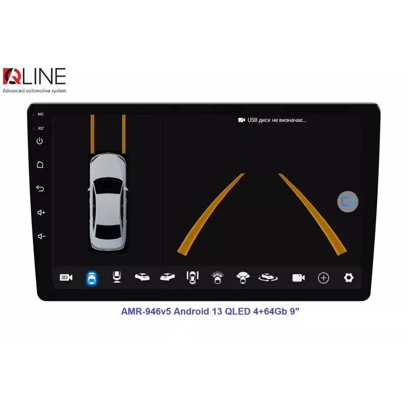 Як видно з назви, новинка має 4/64 Гб пам'яті, 9" екран та OS Android 13 як і попередня версія, але решта функціоналу дуже змінилась. Qline AMR-946v5 отримала яскравий QLED екран 1280*720, популярний та надійний процесор Allwinner A133P 1.8GHz, потужний підсилювач TCB001, радіомодуль SI4755 з покращеним прийомом радіо та RDS, високофункціональний DSP процесор AKM7604, Bluetooth 5.4 і головне - підтримку кругового огляду.