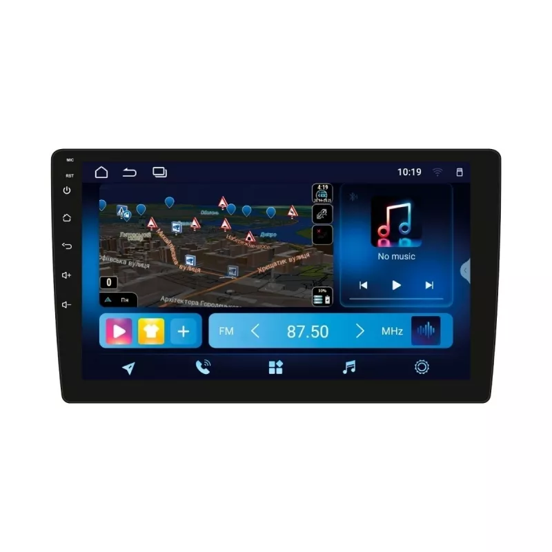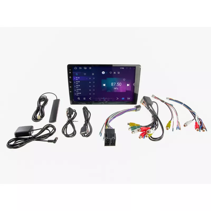 Універсальний мультимедійний центр планшетного типу, для встановлення через перехідну рамку, на операційній системі Android 14, з сенсорним QLED екраном, 10.1 дюйми. Процесор RockChip RK3368P, 8 ядер Cortex A53, частота 2 ГГц, Пам'ять: 8Гб х 128Гб Пристрій призначено для прийому FM/AM радіостанцій, відтворення аудіо, відео, фото з USB та внутрішньої пам'яті, а також для розмови (hands free) і відтворення аудіо зі смартфону по Вluetooth. Підтримує встановлення додатків (включно з програмами GPS навігації). Має 4G GSM модуль та звуковий DSP процесор. Встановлюється в стандартний монтажний розмір під 9 дюймову перехідну рамку, підтримує підключення камер заднього та переднього огляду. Мультикольорове підсвічування сенсорних кнопок. Має CarPlay/Android Auto. Пароль на заводські налаштування (інженерне меню): 2860 ГАРАНТІЯ 12 МІСЯЦІВ