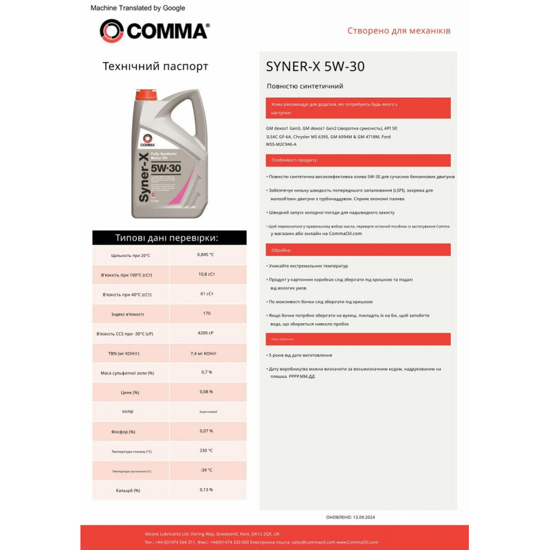 Моторне масло Comma SYNER-X 5W-30 1л