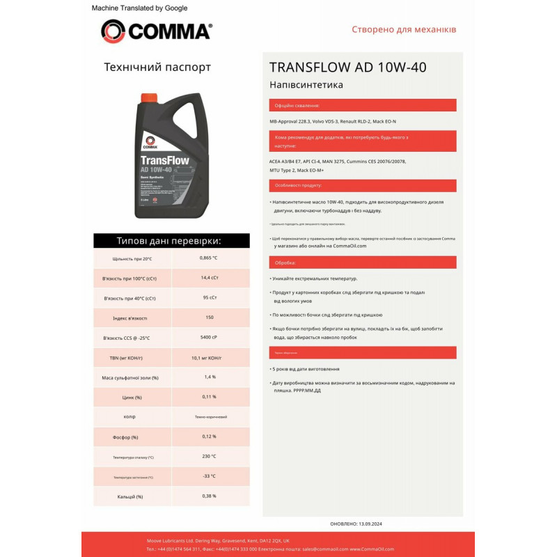Моторне масло Comma TRANSFLOW AD 10W-40 20л