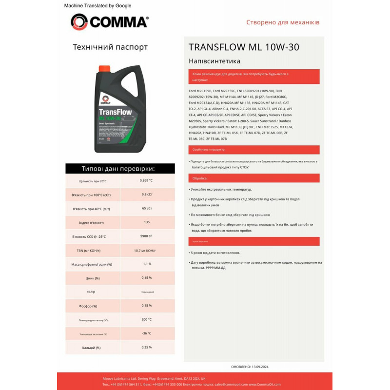 Моторне масло Comma TRANSFLOW ML 10W-30 5л