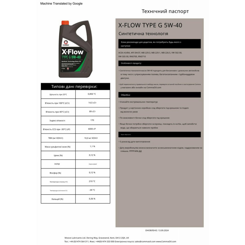 Моторне масло Comma X-FLOW TYPE G 5W-40 20л