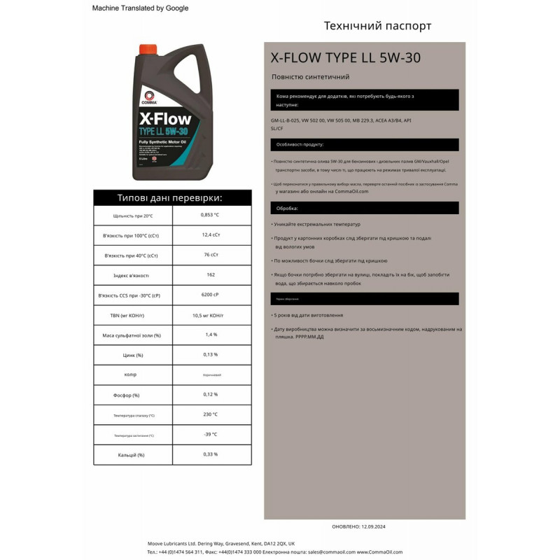 Моторне масло Comma X-FLOW TYPE LL 5W-30 4л