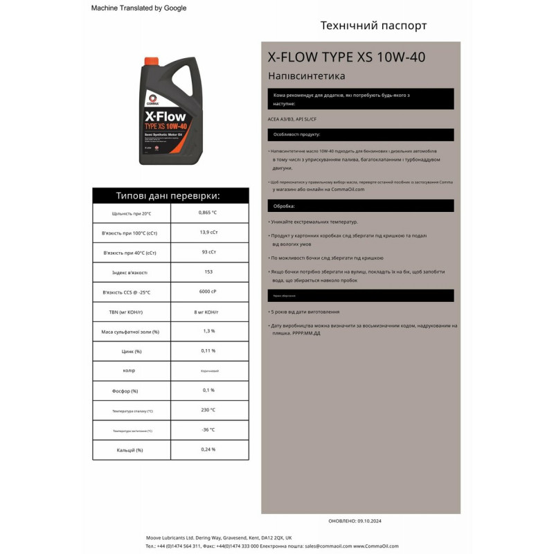 Моторне масло Comma X-FLOW TYPE XS 10W-40 4л