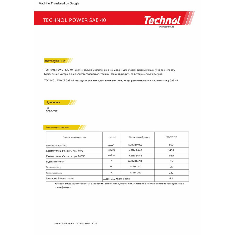 Специфікації: API CF/SF