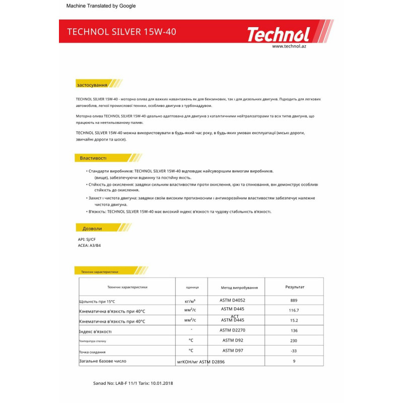 Technol Silver 15W-40 був розроблений для задоволення найсуворіших вимог як до бензинових, так і до дизельних двигунів легкових та легких комерційних автомобілів.