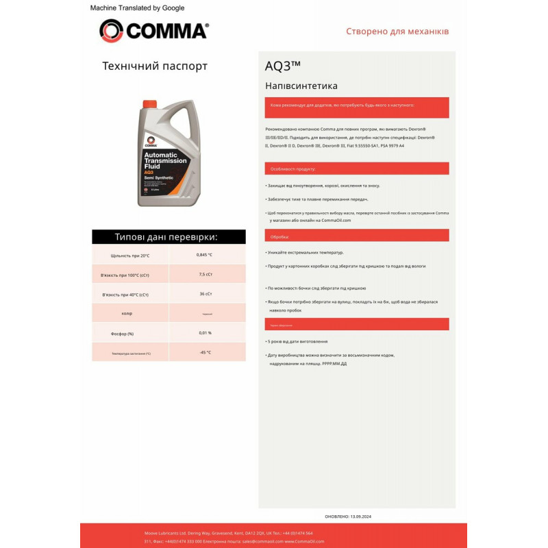 Захищає від піноутворення, корозії, окислення та знусу. Забезпечує тихе і плавне перемикання передач.