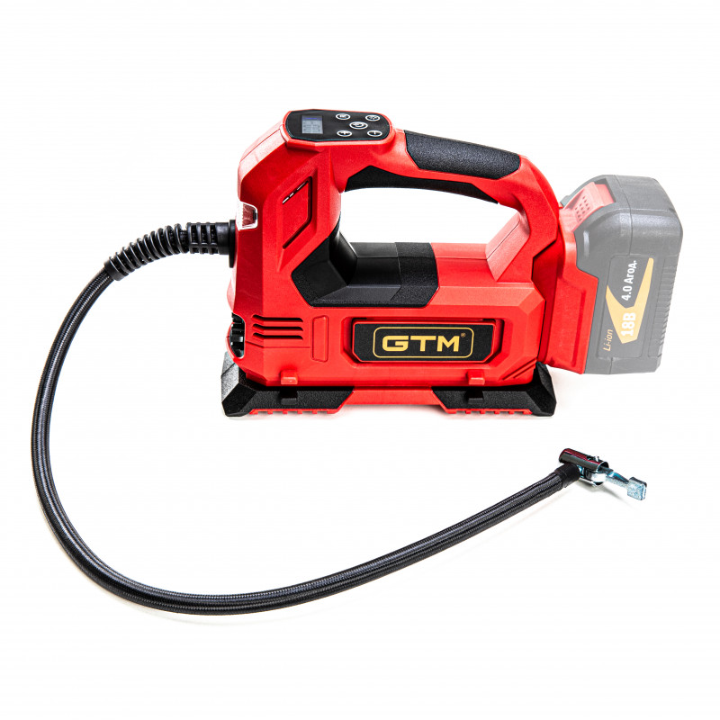 GTM AСC18/26 - компактний і легкий компресор, що призначений для накачування коліс легкових автомобілів або позашляховиків. Це мобільний високопродуктивний компресор без ресивера. Компресор живиться від стандартних акумуляторів GTM 18В або від прикурювача автомобіля. Під час роботи компресор видає 26 л/хв з робочим тиском до 6.8 бара. Компресор поставляється з набором аксесуарів для повноцінної роботи.