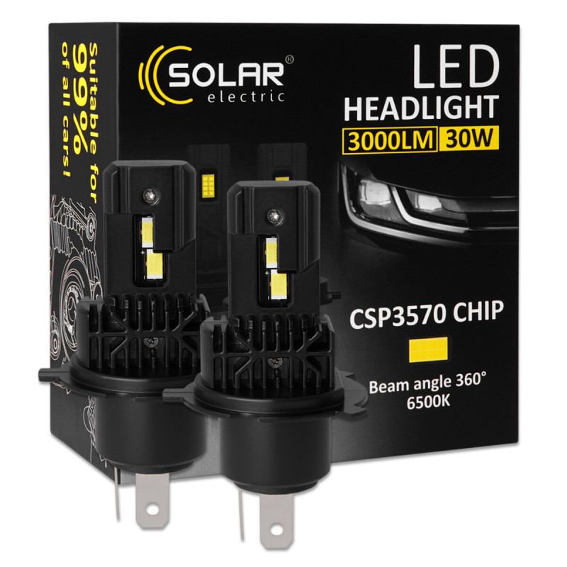 Автолампи Solar H4 12/24V 30W 3000Lm 6500K CSP3570 8404S2 (2 шт.) - це передове рішення у освітленні, яке має безліч переваг у порівнянні з традиційними галогенними лампами та ксеноновими лампами завдяки своїй високій яскравості, довговічності та енергоефективності. Однією з ключових особливостей LED лампи є її висока яскравість та інтенсивність світла. Світловий потік лампи 3000 lm забезпечує виняткову видимість на дорозі у будь-який час та в будь-яких погодних умовах.