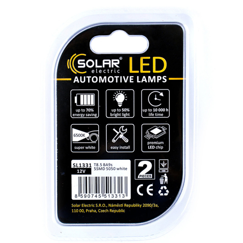 LED автолампа Solar 12V T8.5 BA9s 5SMD white, 2шт