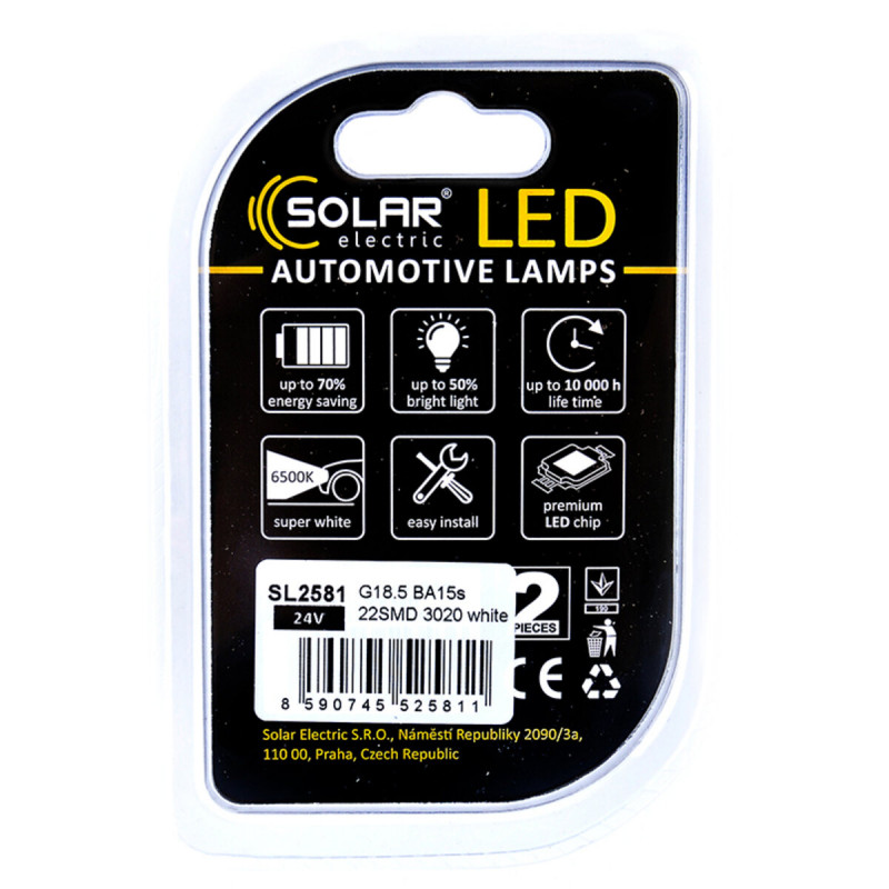 LED автолампа Solar 24V G18.5 BA15s 22SMD white, 2шт