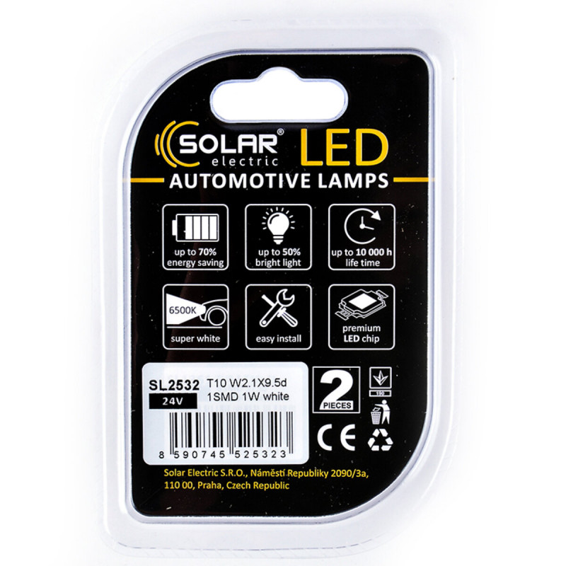 LED автолампа Solar 24V T10 W2.1x9.5d 1SMD white, 2шт