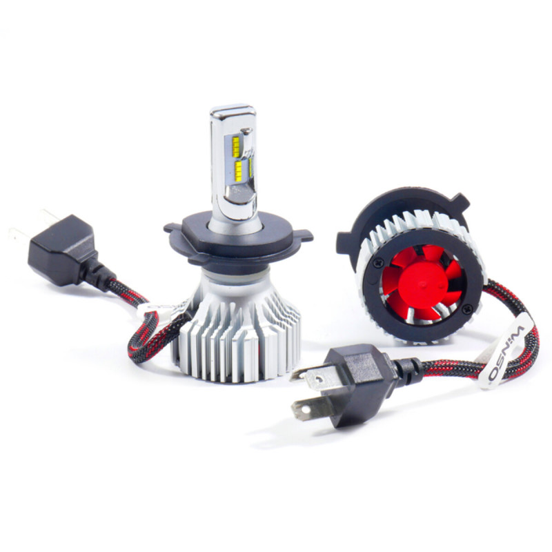 Сучасні високопродуктивні світлодіодні лампи Winso LED H4 12/24V 60W 6500K 8000Lm CSP 798400 (2 шт.) стануть чудовою заміною для класичних галогенних ламп у фарах головного світла легкового та вантажного автотранспорту, а також мікроавтобусів, автобусів, і сучасної спеціальної техніки з напругою бортової мережі 12В або 24В і типом цоколя H4. Компактні розміри лампи дозволяють встановити її навіть в самі невеликі фари. Висока потужність світлодіодів - 60 Ватт забезпечують силу світлового потоку 8000 Лм, що, в сукупності з тепловою температурою 6500 К - біле світло з блакитним відтінком - гарантує чудове освітлення дорожнього полотна, узбіччя, дорожніх знаків та інших учасників руху для максимально комфортного і безпечного пересування в темний час доби.