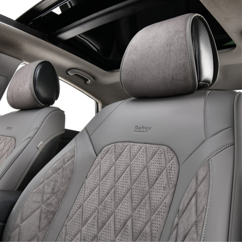 - Матеріал підголовників — "Алькантара", колір — сірий.