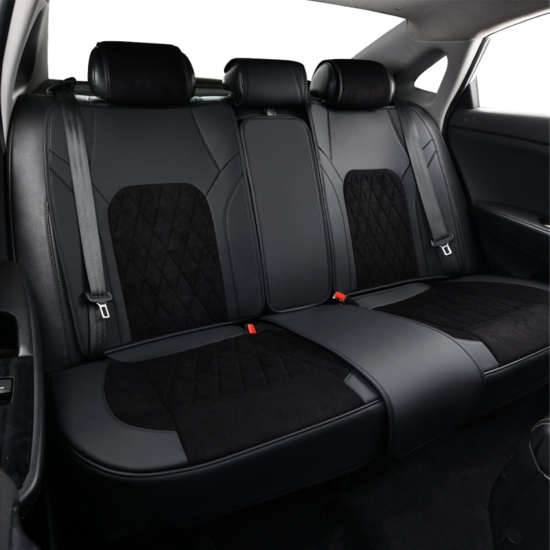 - Матеріал центральних вставок — "Алькантара" з перфорацією, колір — чорний, декоративна шовкова нитка — чорна.