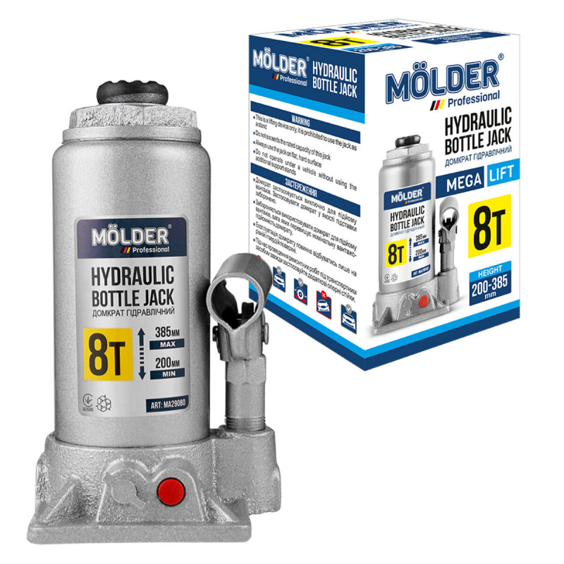 Домкрат гідравлічний пляшковий Molder 8т 200-385мм