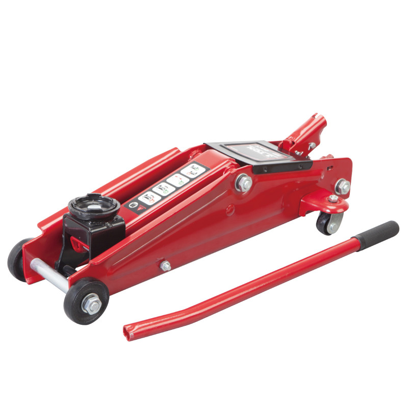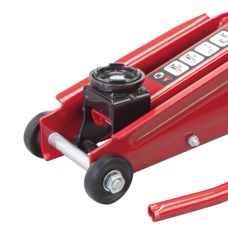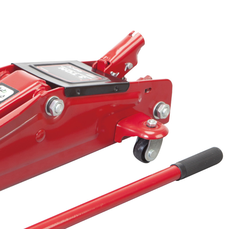 GTM T830020 - напівпрофесійний підкатний домкрат для підняття та фіксації на висоті різного вантажу вагою до 3 т. Такий тип домкратів відрізняється меншою висотою, що дозволяє забезпечити нижчу висоту підхоплення вантажу.
